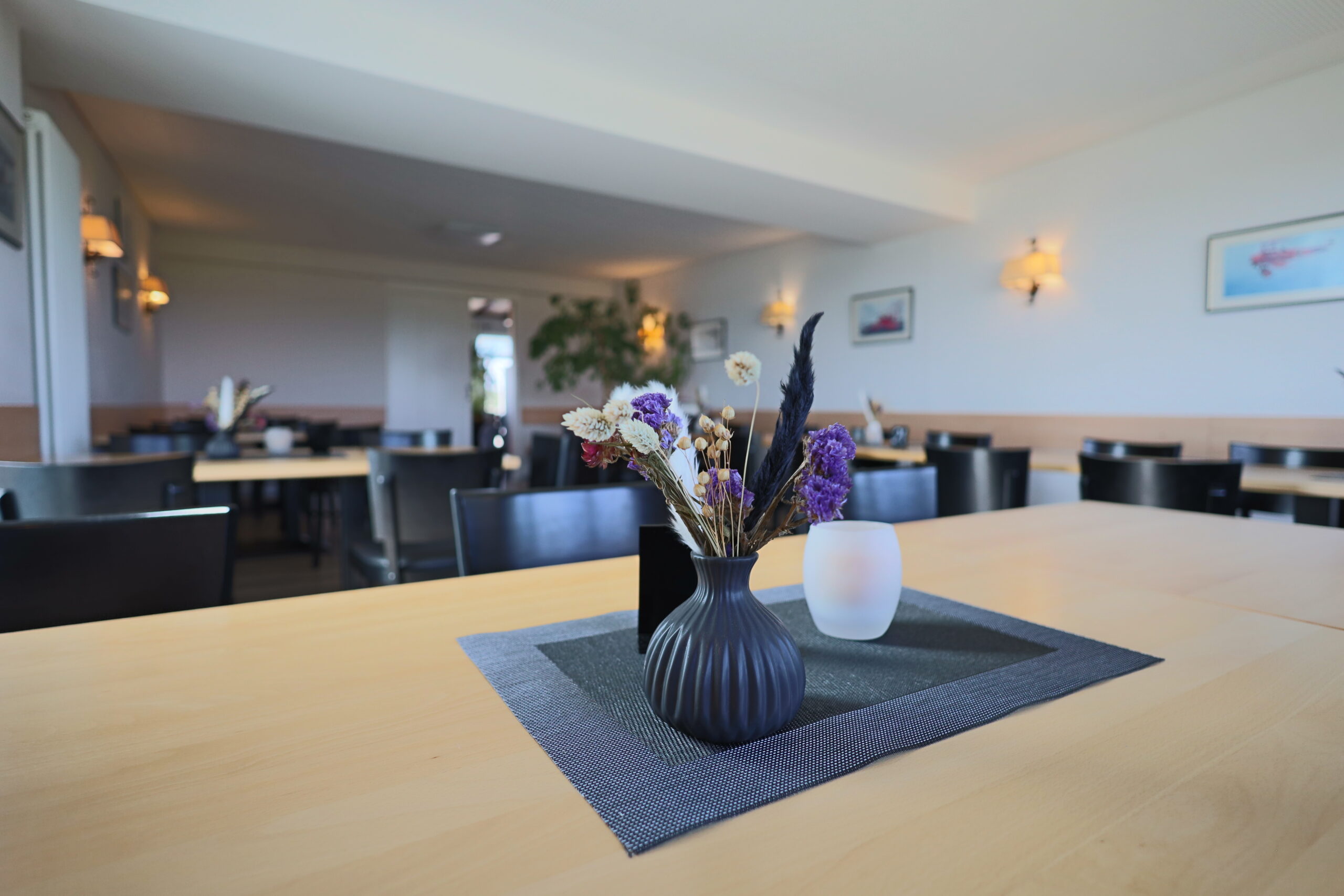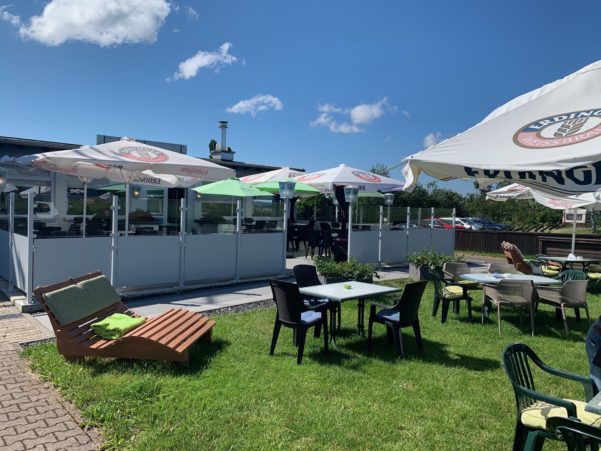Unsere moderne Terrasse mit Blick auf die Landebahn, lädt Sie ein bei uns zu verweilen. Genießen Sie bei einem leckeren Getränk unsere wunderschöne, einzigartige Aussicht auf den Sonnenuntergang.